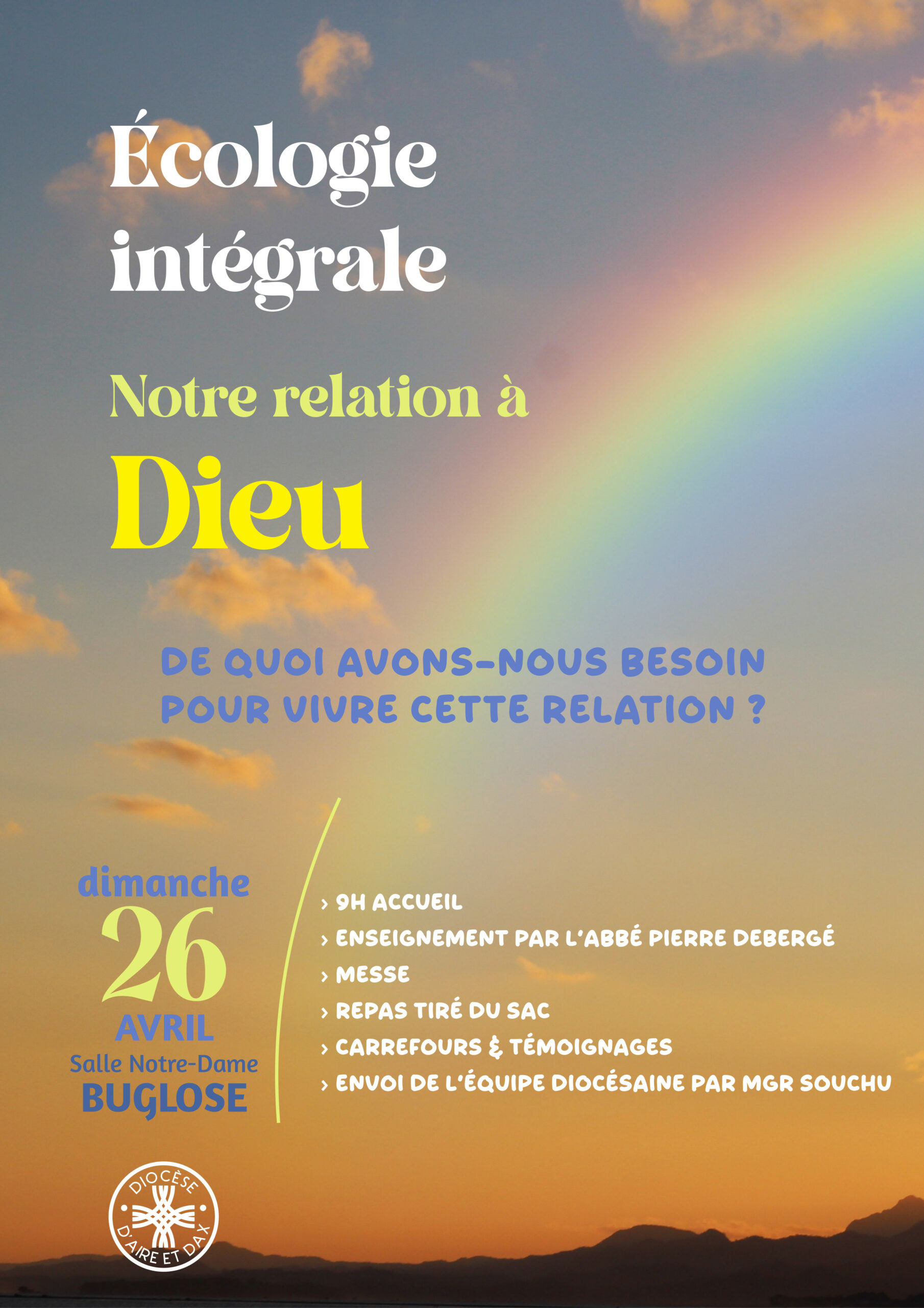 Une journée diocésaine, à Buglose, le dimanche 26 avril, continuera de nous sensibiliser sur notre relation à Dieu, aux autres, à moi-même et à la Création dans le sillage de Laudato’Si.